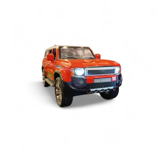 This is an impressive die-cast model car of a rugged, off-road style SUV, sporting a bold red and white two-tone paint job. This model is packed with features, including realistic lights and sounds and multiple openable parts—you can check out the interior, lift the hood to see the engine, and...