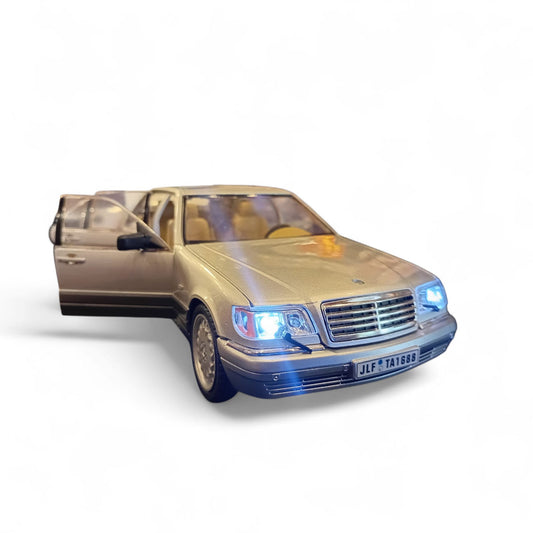 This is a detailed model car of the legendary Mercedes-Benz S320 (W140) S-Class, a classic luxury sedan known for its unparalleled build quality and innovative technology. This specific model captures the stately presence of the "S-Klasse" flagship and features working lights and sounds for an authentic collector or play experience,...